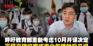 呼吁教育部重新考虑10月开课决定 巫程豪建议完成青少年接种后开课