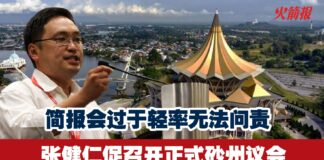 简报会过于轻率无法问责 张健仁促召开正式砂州议会