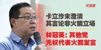 卡立沙末澄清其言论非火箭立场 林冠英:其他党无权代表火箭发言
