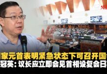 拒召开国会背叛民主轻蔑元首 林冠英:针对首相和内阁报警