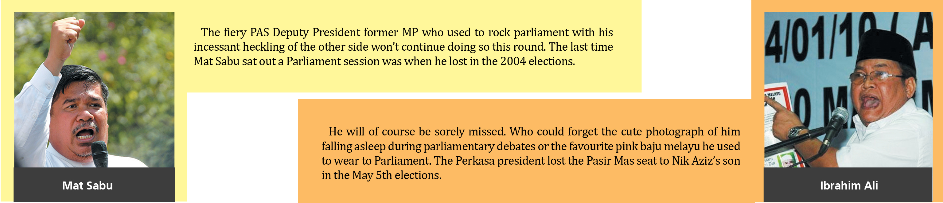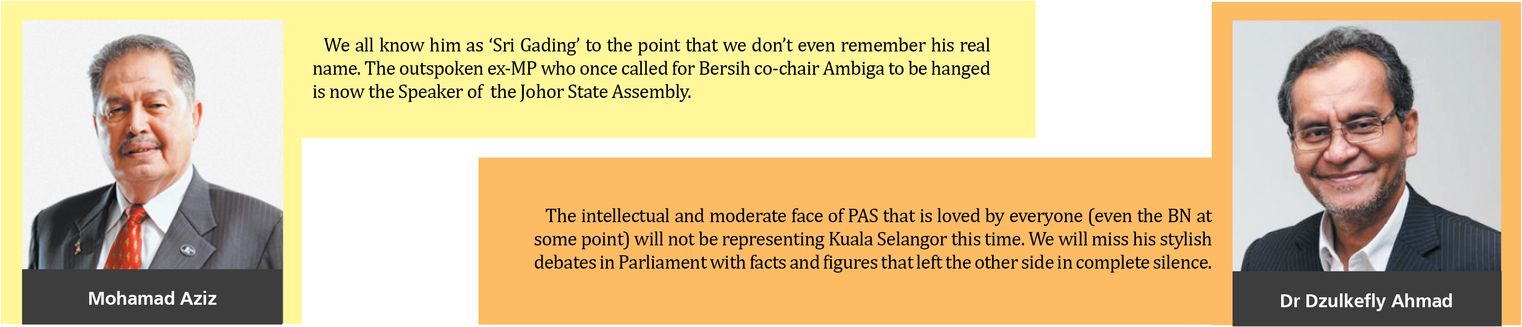 Be that as it may, some are just too unforgettable for whatever reason. We list ten of whom we think will be sorely missed (or not) as the 13th Parliament starts this month.