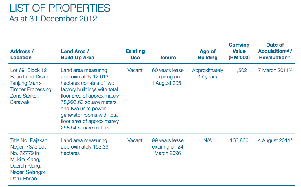 The above “List of Property’s Report” brings to light The “Date of Revaluation” which is clearly stated as 4 August 2011 Tadmax’s Annual Report, where the land involved is valued at RM163,860,000 (RM 9.93psf).
