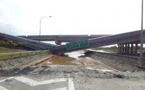 A flyover on the road to Selangor Science Park II has collapsed, a week after the second Terengganu Stadium roof caved in. The PKNS project commenced in 2007 and was completed in 2009 and handed over to PLUS and the Malaysian Highway Authority.