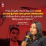 Is the Deputy Minister and the Ministry of Home Affairs blind and deaf to the cries of Malaysian mothers abroad who wish to see their children as Malaysian citizens or are they succumbing to the pressure from conservative, radical, chauvinistic views of those, either within the Ministry or even the Attorney General’s Chambers to deny this to Malaysian mothers abroad?
