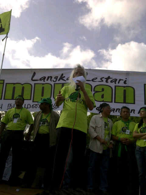 The 76-year-old National Laureate A. Samad Said recited a poem to the crowd entitled “Gebeng yang meluka” (hurting Gebeng). His Bersih 2.0 co-chairperson Ambiga Sreenevasan also spoke, followed by activist Hishamudin Rais who introduced three green activists. The activists revealed three other projects that were potentially harmful including an incinerator in Cameron Highlands.