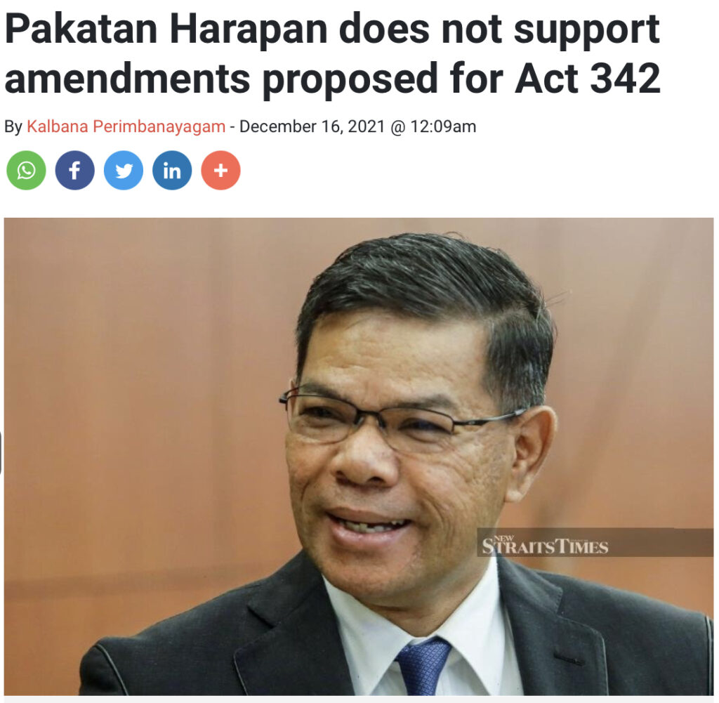 NST article screenshot on Pakatan Harapan rejecting the proposed amendment.