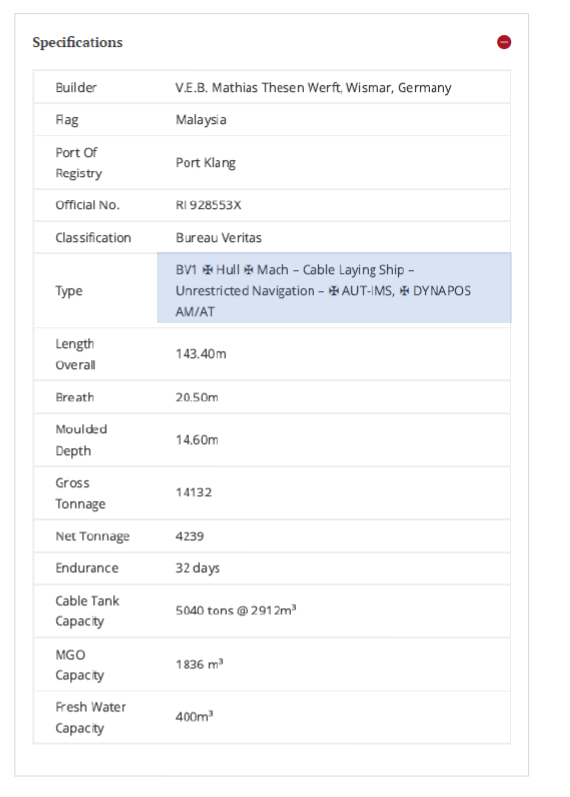 Finally, Dr. Wee also claims that OMS group had recently purchased a ship by the name of Lodbrog which has Dynamic Positioning 2 (DP2) undersea cable repairs capabilities. But the technical specifications from the OMS group website seems to tell a different story.