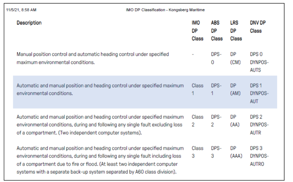 Explanation of Dynamic Position Systems (DPS) 1, 2 and 3 Classification Schemes with DP(AM) clearly shown as a DP1 ship[15]
