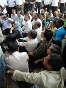 It compelled the director of the state NRD, who initially refused to have anything to do with the crowd, to come down from his office on the upper floors and discuss matters with the leaders of the campaign. However, even he walked out of a discussion with PKR vice-president N Surendran, who is leading the campaign to legitimise the stateless.