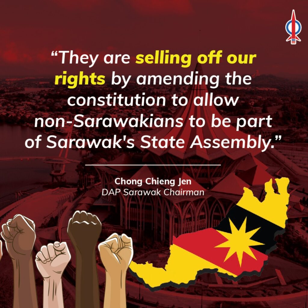 DAP & PSB objects to the proposed amendment to the Constitution of the State of Sarawak (Amendment) Bill, 2020 on the ground that such amendment will allow any West Malaysian or Sabahan to be elected as a member of the State Legislative Assembly of Sarawak.