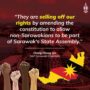Over the past 57 years, there has been consistent and gradual surrendering of State rights to the Federal Government. Nothing is more serious than this present amendment of the Constitution of the State of Sarawak. This is the culmination of the past 57 years of erosion of State’s rights, allowing non-Saraawakians to be a member of the highest legislative body of the State.