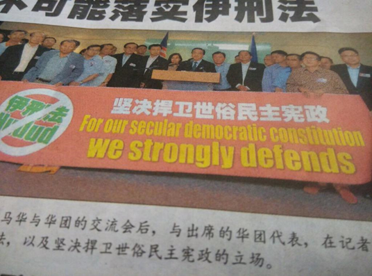 Apart from the official page of the Prime Minister’s office, Ong also threw in an example of an MCA event , which had a banner that read: “For our secular democratic constitution, we strongly defends.”