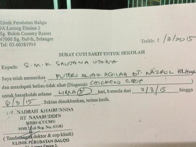 “The doctor in question probably diagnosed the child as having Chicken Pox but I cannot say for sure. The child may have accidentally swallowed an entire chicken chop and had to be sent home as a result,” Ong quipped.