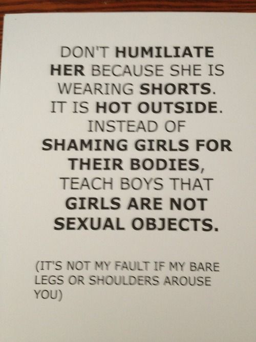 “Any thinking being would wonder why women’s issues (about clothing) was preached to men,” she said.