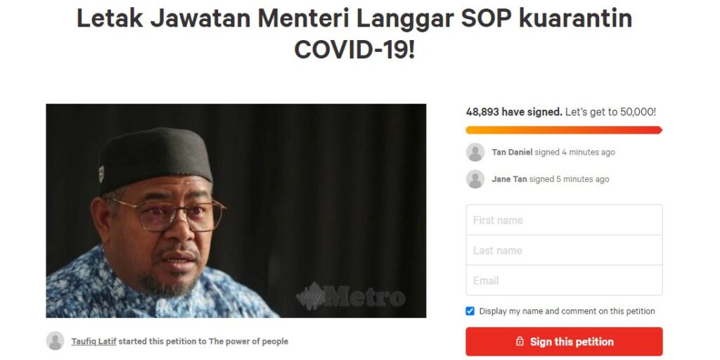 As a result, an online petition was started calling on Khairuddin to resign as a Cabinet Minister.