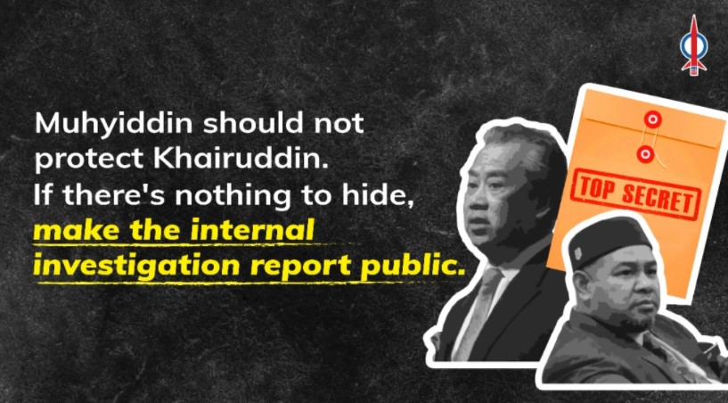 I call on Muhyiddin to instantly make public the report of the Health Ministry internal investigation on Khairuddin’s violation of the Covid 19 quarantine SOP and let the axe fall where it may.