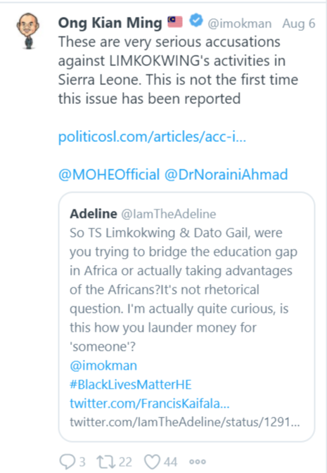 The accusation of corruption in the case of LimKokWing University of Creative Technology (LCUT)’s operations in Sierra Leone was a subject of investigation by the Anti-Corruption Commission (ACC) in that country and has been widely reported in the press in that country.
