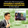Federal Government should grant an immediate three-month loan moratorium and cash aid to help Malaysians overcome MCO 3.0