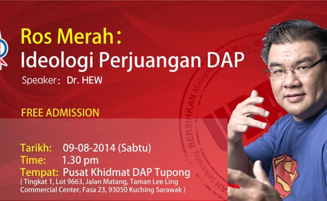 The program, held in collaboration with DAP Sarawak and the DAP Youth of Kuching Sarawak titled “Ros Merah, Ideologi perjuangan DAP” features speaker Dr. Hew Kuan Yau better known as “Superman”.