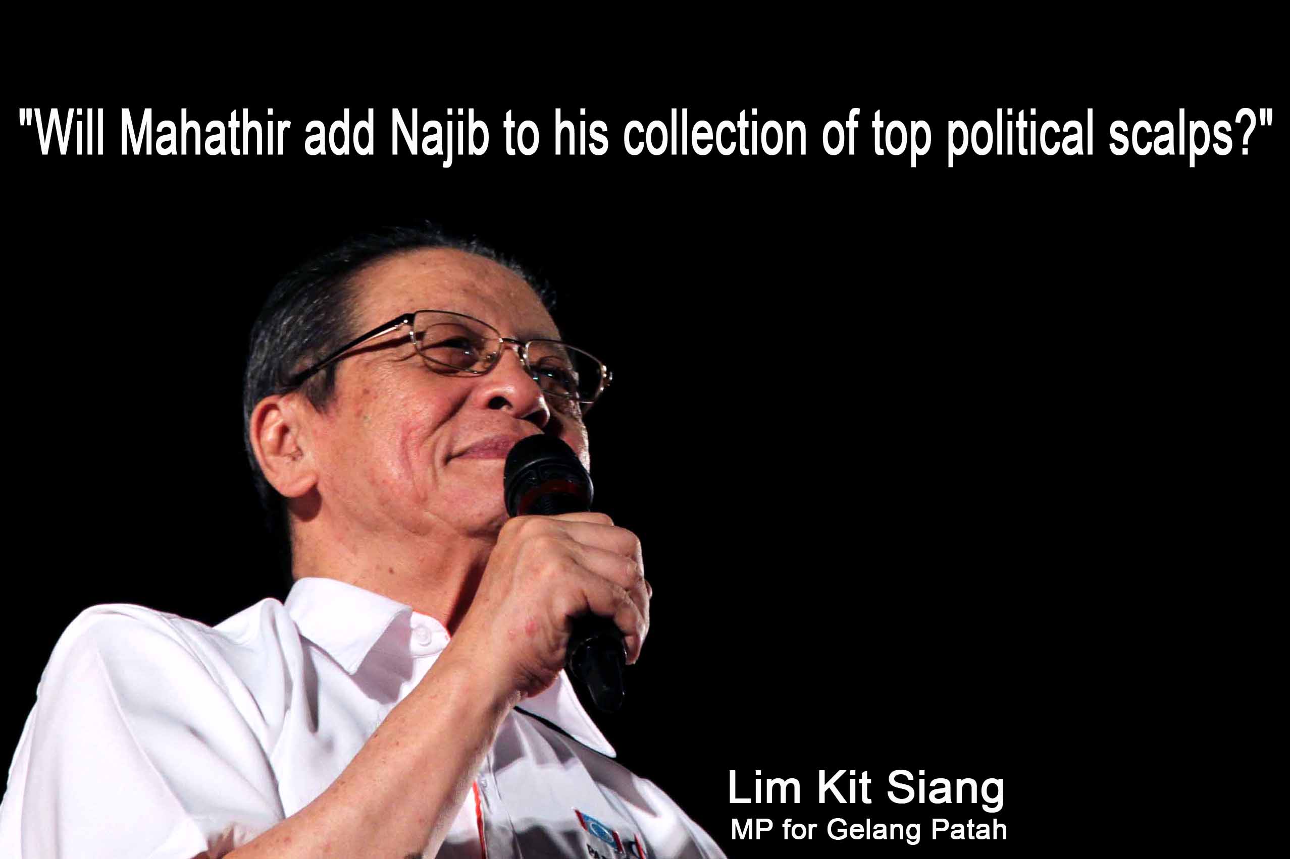 “The question now is whether Mahathir will add the sixth Prime Minister of Malaysia, Datuk Seri Najib Razak, to his collection of six top political scalps in Malaysia,” Lim said.