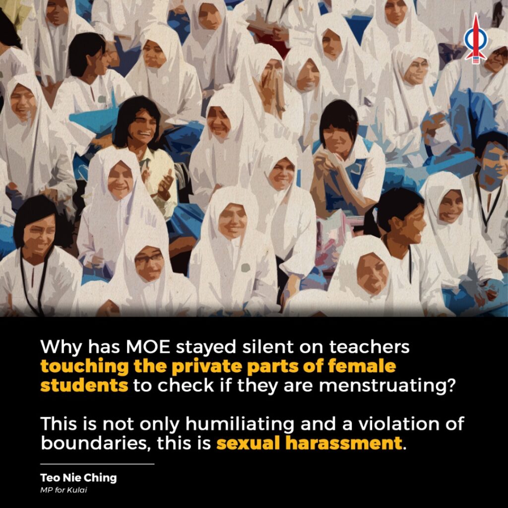 As far as I am concerned, there are no guidelines allowing teachers to do this. So why have these sport checks been happening? And what shocking us is, to date, the Ministry of Education (MOE) has not issued any statement on this.