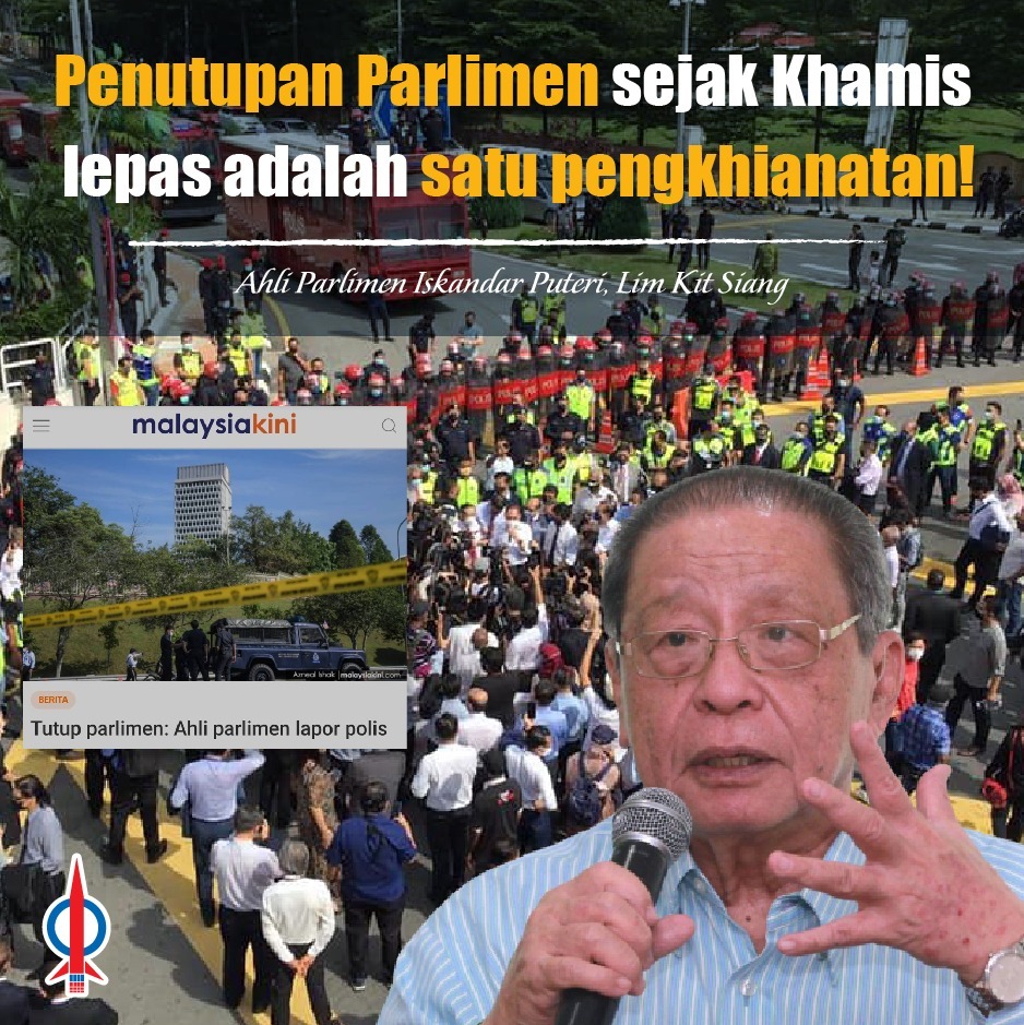 The Member of Parliament (MP) for Iskandar Puteri, Lim Kit Siang has called out the Perikatan Nasional (PN) government for abruptly suspending Parliament in the midst of a national catastrophe as Malaysia is currently heading towards more than 1,500,000 cumulative Covid-19 cases and over 15,000 casualties from the pandemic.