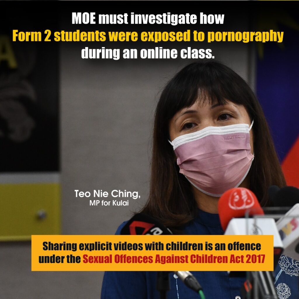 I am appalled and shocked at the experience shared by Form 2 students at a secondary school in Kuala Lumpur when an explicit video started playing on their screens while participating in a design and technology (RBT) exam conducted via video conferencing platform Google Meet.