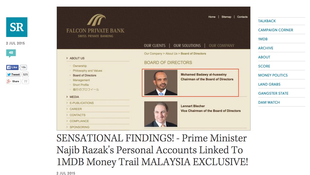“A total of US$681,999,976 (RM2.6 billion) was separately wire transferred from the Singapore branch of the Swiss Falcon private bank owned by the Abu Dhabi fund Aabar into the Prime Minister’s private AmBank account in Kuala Lumpur, on March 2013, just in advance of the calling of the General Election,” the report stated.