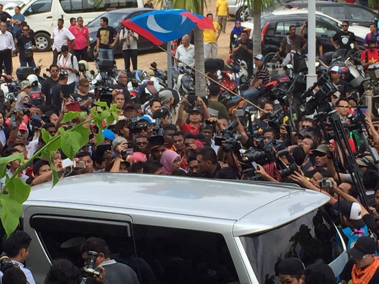 3:14pm Anwar’s family have gotten into the car. Press surround the vehicle and refuse to let them go. Supporters still crowding around.