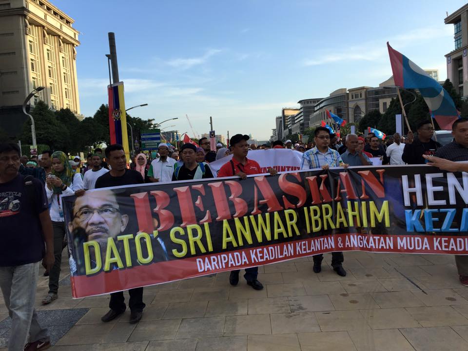 8.18am: Supporters numbering some 150 people marching towards Palace of Justice shouting “Reformasi” and “Hidup Anwar”