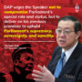 DAP urges the Speaker not to compromise Parliament’s special role and status but to deliver on his previous recorded promises on upholding the supremacy, sovereignty, and sanctity of Parliament.