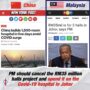 Yesterday, it was reported that China government finished building a 1,500-room hospital in five days for COVID-19 patients to fight a surge in of infections in that country. At the same time, we in Malaysia were told that three community halls will be built in the Prime Minister’s constituency as soon as possible. It is obviously a priority totally misplaced.