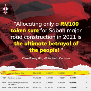 Budget 2021: RM100 token allocation for Sabah major road construction is a betrayal of the rakyat