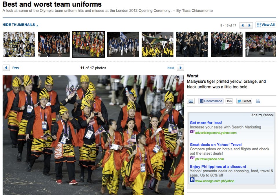 Their surprise is given a jolt by the parade of Malaysia’s garish taste in fashion, as our national team was ushered into the glittering opening ceremony of the London 2012 Olympics. Our soaring pride and high spirits were tainted by the world’s agonizing perception towards our tackily designed national team costume – ranked by one online portal as the worst team costume. Now understandably puzzled, Malaysians —already laced with contempt and grief— responded with a concerned question: just, why?