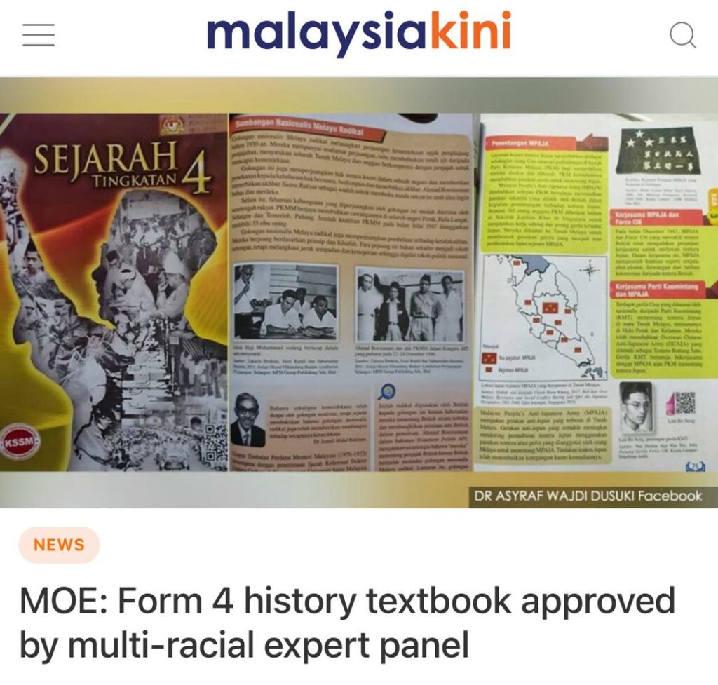 Unfortunately, the UMNO Youth subjectively and one-sidedly interpreted the History textbook, and later hastily criticized it for propagating communism merely based on part of the history of the resistance against Japanese aggression.