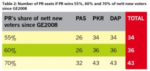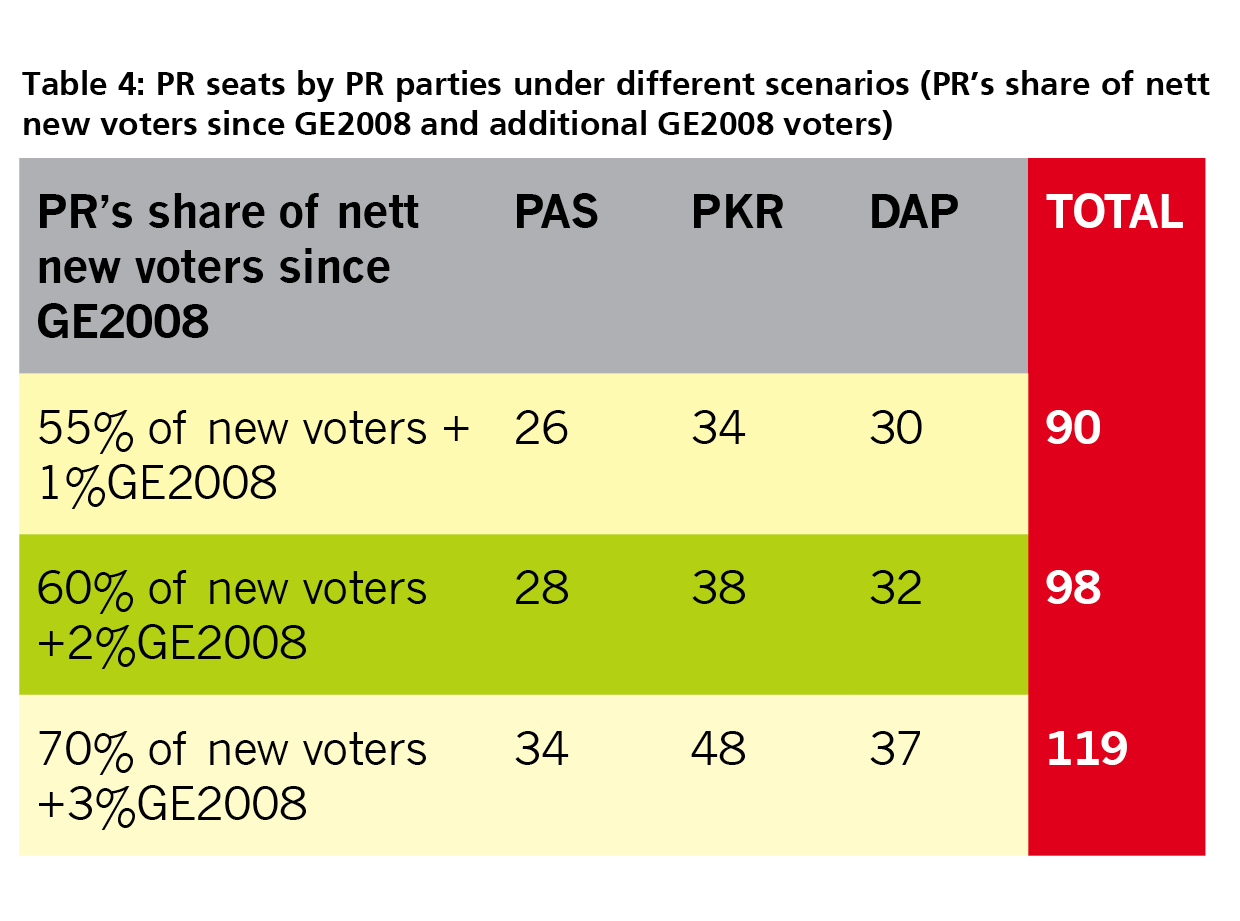 Under the scenarios in Table 3, PKR would remain the largest party followed by DAP and PAS (Table 4 below)