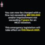 This Emergency legislation will put into effect the following: i. All offences under the Prevention and Control of Infectious Diseases Act 1988 (Act342) will become seizable offences.