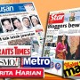 Figures from the Audit Bureau of Circulations (ABC) show that during the period 2005 to 2009, The Star’s circulation dropped from 310,000 to 287,000 (-7.4 per cent), the New Straits Times from 139,000 to 111,000 (-20 per cent), Utusan Malaysia from 213,000 to 169,000 (-21 per cent) and Berita Harian from 204,000 to 155,000 (-24 per cent).