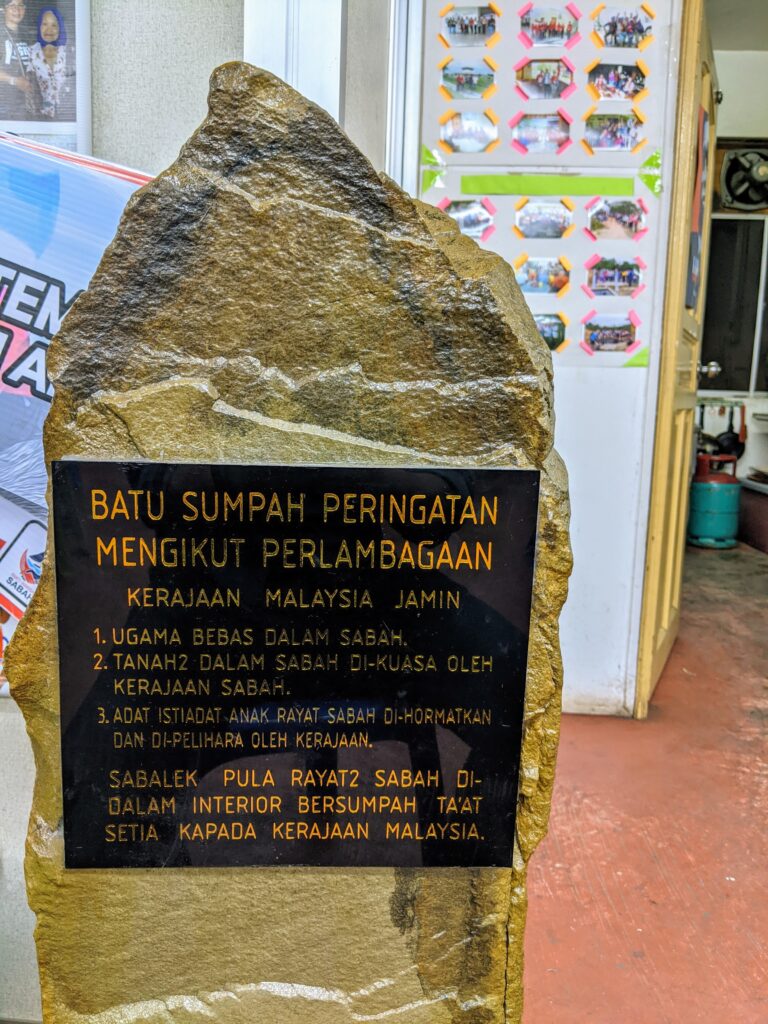 The Keningau Batu Sumpah inscribed the historic guarantees given to Sabahans in the interior for Sabah’s joining in forming Malaysia in 1963 – about freedom of religion, that land will forever be a state matter and customary rights will forever be respected and safeguarded by the government.